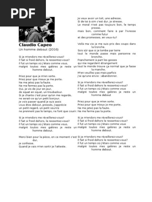 Claudio capeo un homme debout ( paroles/lyrics) подробнее. Chordify gives you the chords for any song. Documents similar to claudio capeo un homme debout.